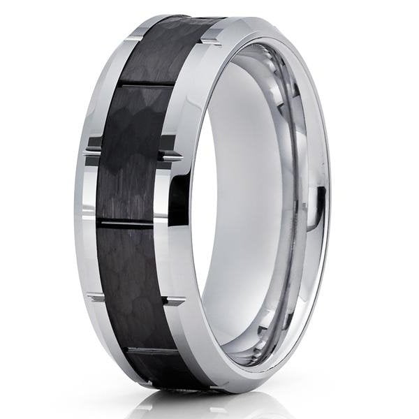 Classic 8mm Tungsten Carbide Ring BlackSilverGold Brushed Two Grooved Center Hammered Design Mens Wedding Band for Men. Order before 300 EST for Same Day Shipping. Our black tungsten wedding band has the masculine look and feel men like to wear.